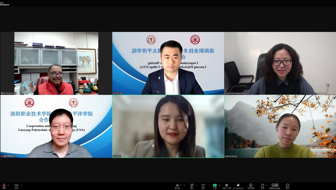 3月12日,我校与美国太平洋学院举行线上合作交流会。美国太平洋学院副校长Preston Carr、招生总监Shannon Huang,我校国际学院院长陆敏出席会议。