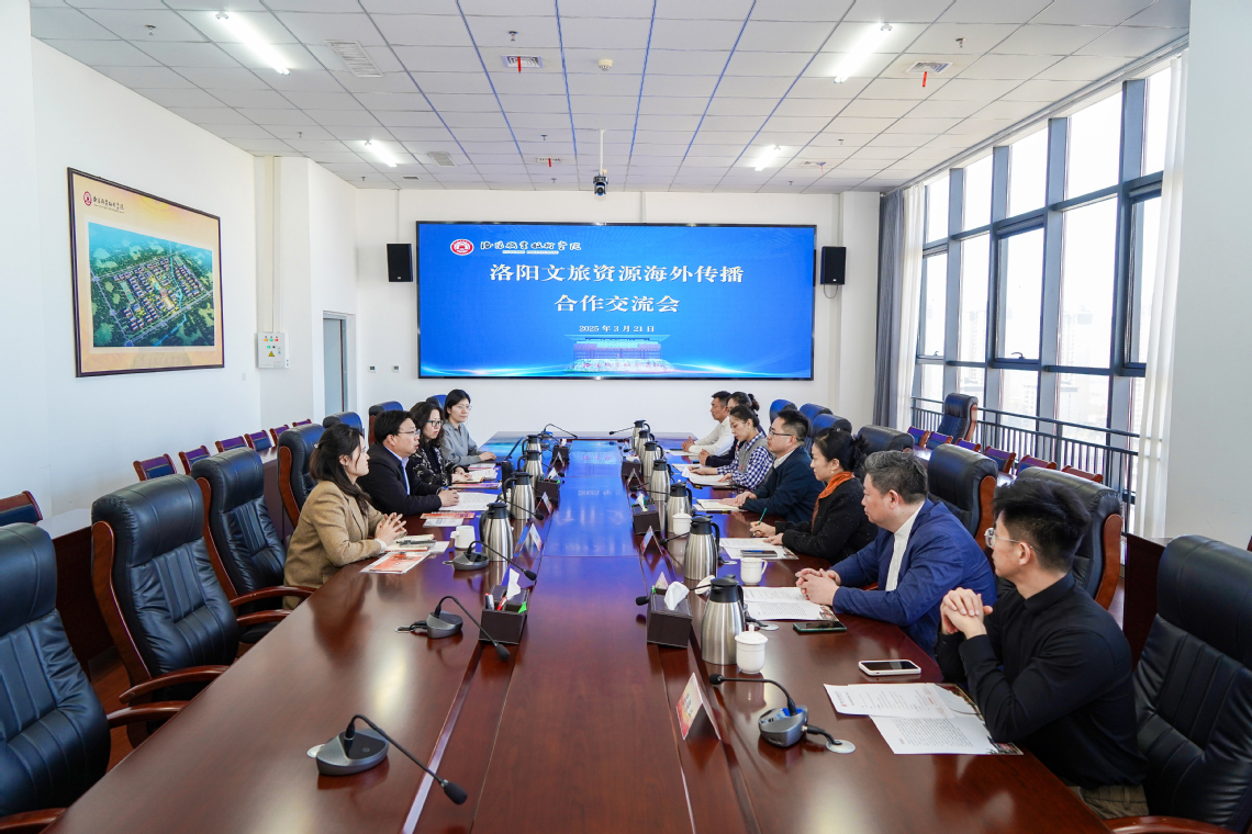 3月21日,洛阳文旅资源海外传播合作交流会在图书馆801会议室举行。洛阳市侨联党组成员、秘书长刘涛,河南省华侨国际文化艺术交流协会副主席兼秘书长邓东平、海南太一国际教育科技有限公司董事长李莉,我校副校长张卫国出席座谈会。