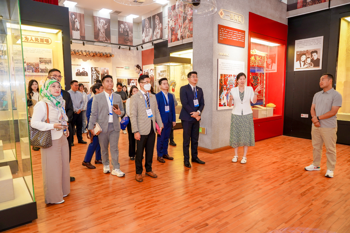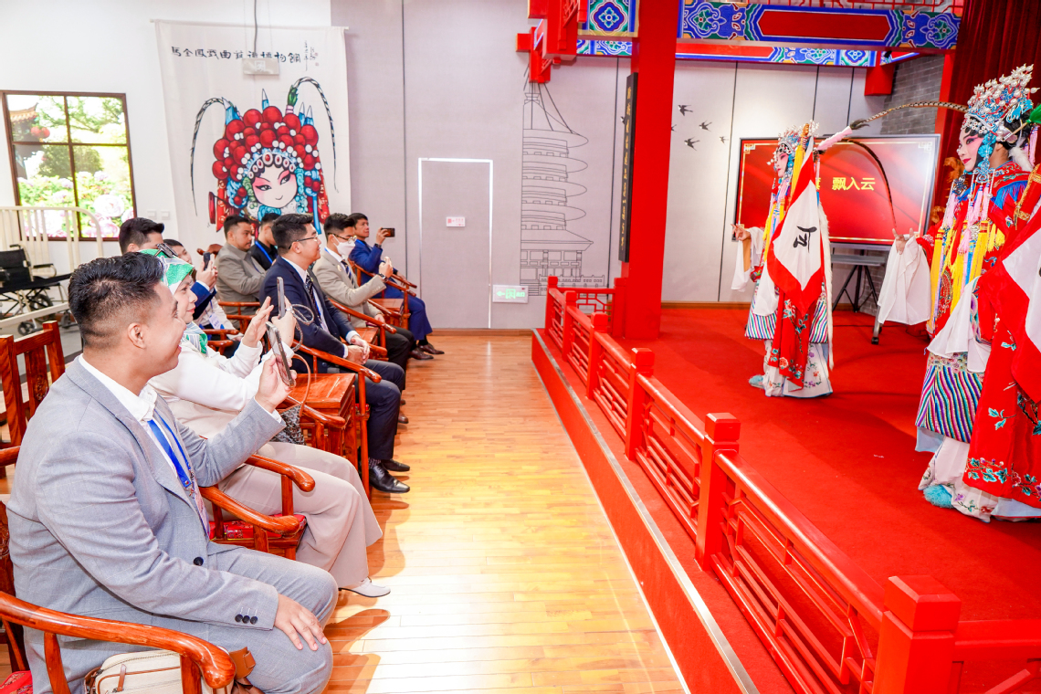 在马金凤戏曲艺术博物馆,这些来自东盟国家的国际友人在讲解员的讲解下,详细了解了洛阳职业技术学院终身教授、豫剧大师马金凤先生的生平事迹,并在豫剧工坊聆听了戏曲艺术学院学生现场演唱的豫剧经典唱段《穆桂英挂帅》选段,嘹亮的唱腔和精彩的表演,赢得了大家的热烈掌声。