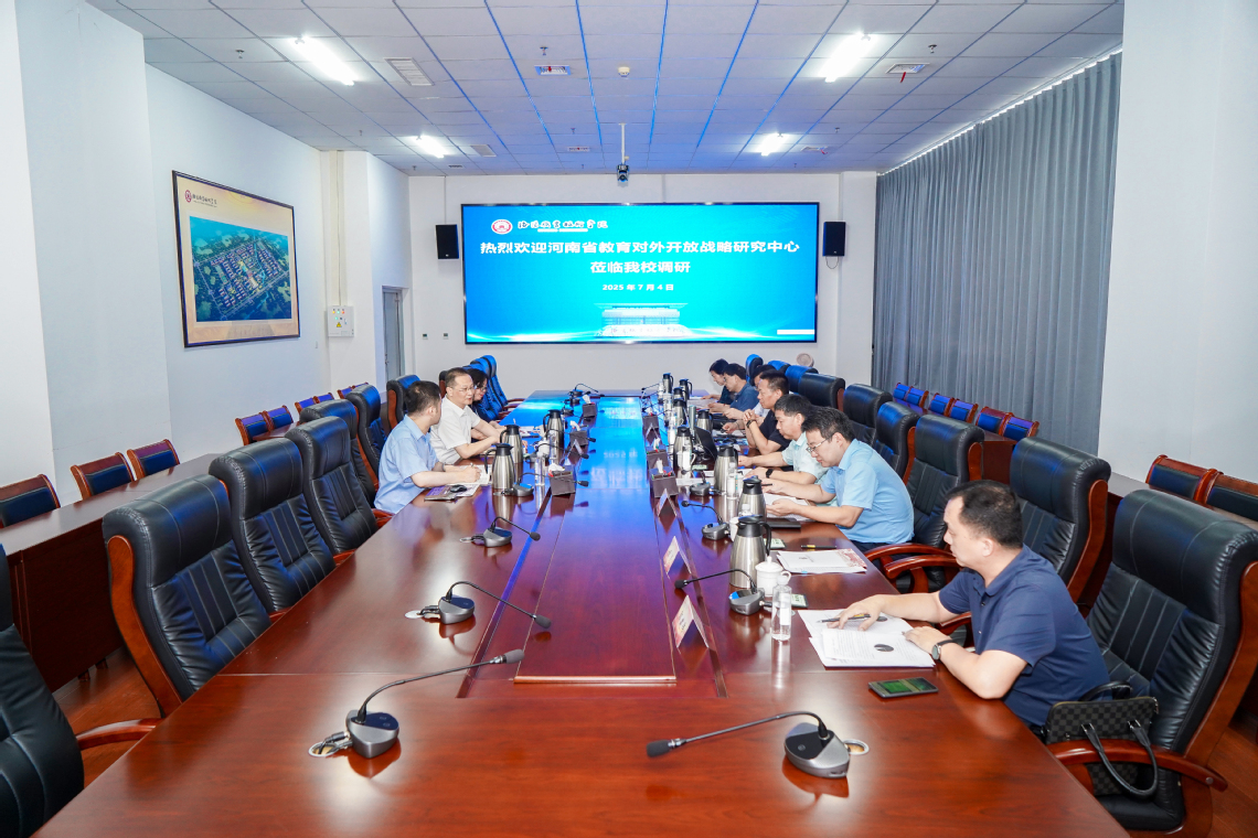7月4日,河南省教育对外开放战略研究中心副主任马强和率专家组一行赴我校调研,校长李保安出席座谈会。