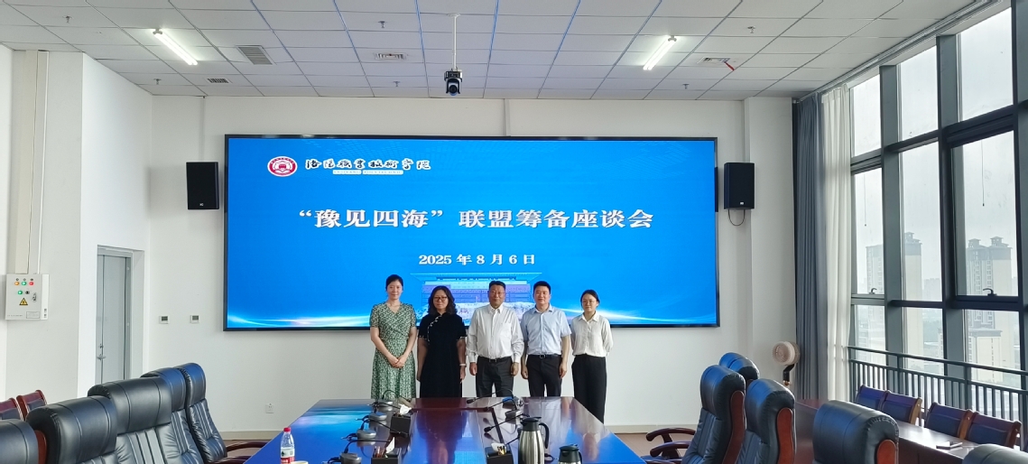 8月6日,“豫见四海”联盟筹备座谈会在图书馆801会议室举行。河南国际合作集团有限公司原副总经理、“一带一路”研究院专家张成平、综合办公室主任孙延雷,我校国际学院院长陆敏出席座谈会。