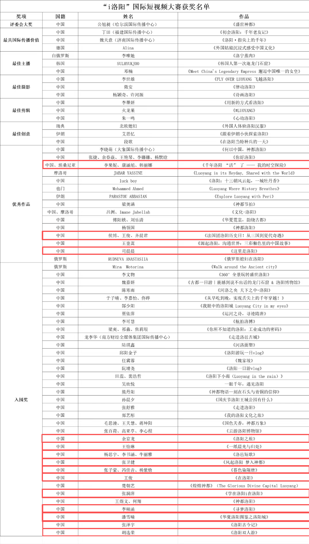 “i洛阳”国际短视频大赛由中共洛阳市委宣传部、市委网信办指导,洛阳日报报业集团主办,洛阳国际传播中心、洛报融媒视觉梦工坊承办。大赛以短视频为媒介,用接地气的表达向世界展示洛阳文化与风采,总奖金10万元,设评委会大奖等多个奖项,经初评、复评、终评确定结果。