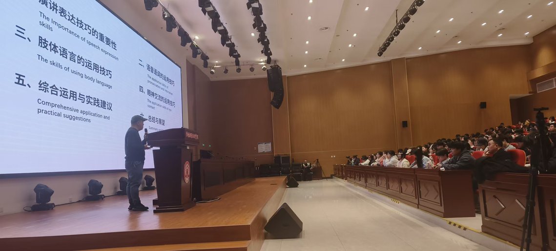 活动现场,洛阳新励途出国留学服务有限公司陈攀校长率先登台授课,围绕演讲逻辑结构设计的核心方法与实用工具辅助技巧展开系统讲解,以清晰透彻的阐释、贴近实操的案例,帮助师生理顺演讲思路、破解实践难题。随后,中洛(河南)文化传媒有限公司李远强老师作演讲表达与临场应变技巧专题分享,从开场互动破冰、提问设计引导、情绪调节把控等方面,传授了兼具专业性与实用性的演讲技巧,助力师生增强表达说服力与临场应变自信。
